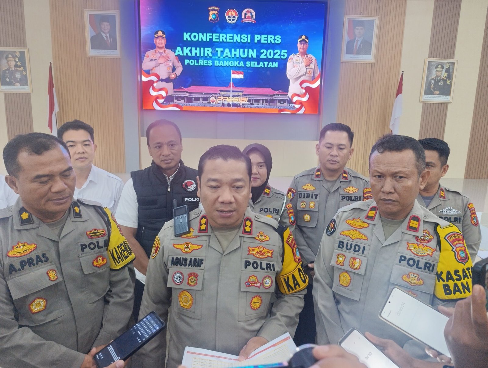 Hal tersebut diungkapkan Kapolres Bangka Selatan, AKBP Agus Arif Wijayanto, dalam konferensi pers akhir tahun pada Selasa (30/12/2025). Data menunjukkan jumlah tersangka narkoba turun dari 60 orang pada 2024 menjadi 55 orang pada 2025. Namun, jumlah barang bukti yang disita melonjak hingga 405,55 gram sabu dan 94,5 butir ekstasi.