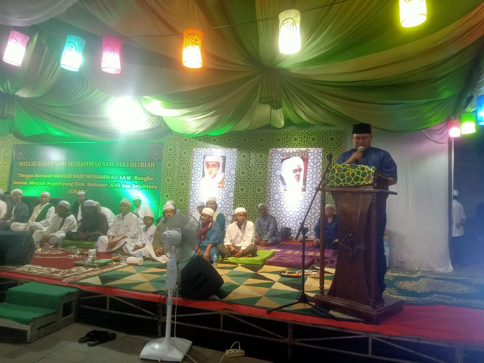 Acara Maulid Akbar Nabi Muhammad SAW 1445 Hijriah, juga dihadiri oleh Bupati Bangka Selatan, Riza Herdavid, Wakil Bupati Bangka Selatan, Debby Vita Dewi, Ketua DPRD Bangka Selatan, Erwin Asmadi, Perwakilan Polres Bangka Selatan, Perwakilan Kodim 0432/Bangka Selatan, Kepala OPD Pemkab Bangka Selatan, Ketua MUI Bangka Selatan, Tokoh Masyarakat, Tokoh Agama serta tamu undangan lainnya.