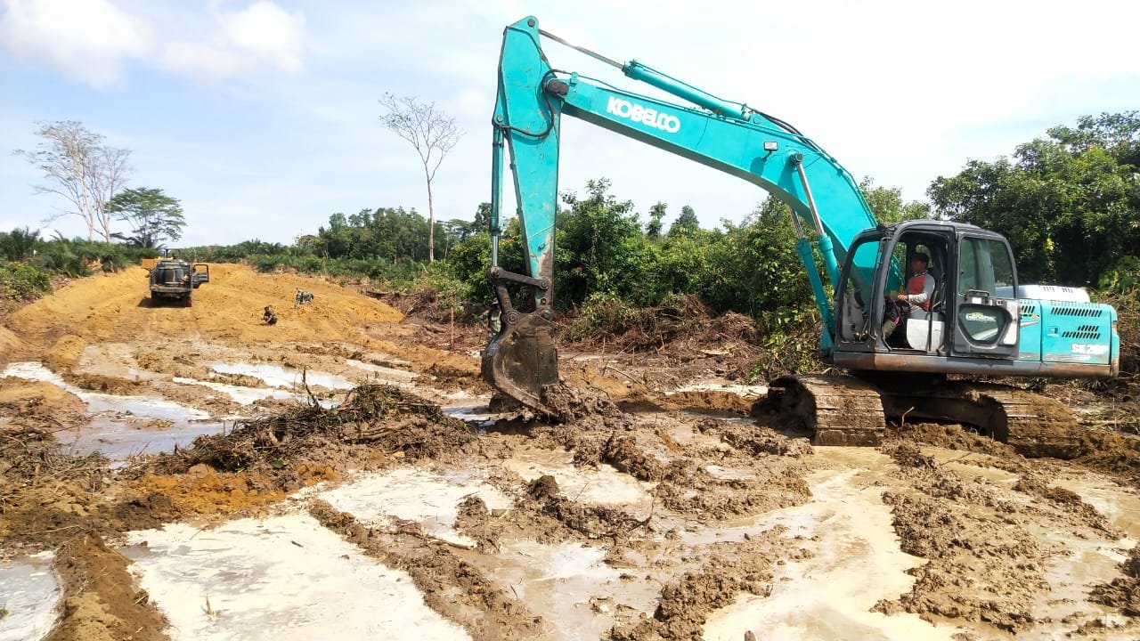 Sementara alat berat jenis exsavator yang pertama sedang membuka badan jalan kebun karet di Desa Air Putih.