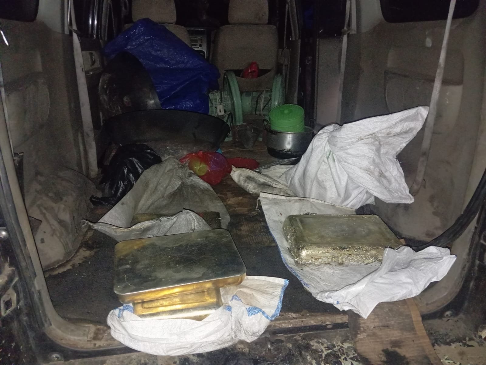 7 batang timah balok dengan berat total sekitar 175 kg.