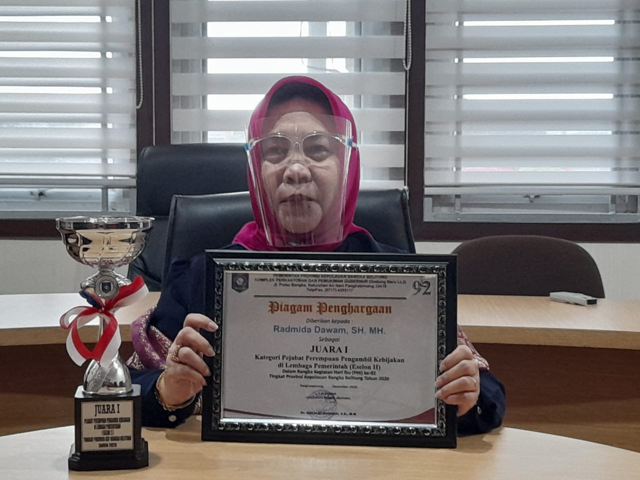 PANGKALPINANG, ERANEWS.CO.ID — Sekretaris Daerah (Sekda) Kota Pangkalpinang, Radmida Dawam mendapat penghargaan dalam katagori sebagai Pejabat Perempuan Pengambil Kebijakan di lembaga pemerintah se-Provinsi Kepulauan Bangka Belitung dengan maraih juara I (satu).