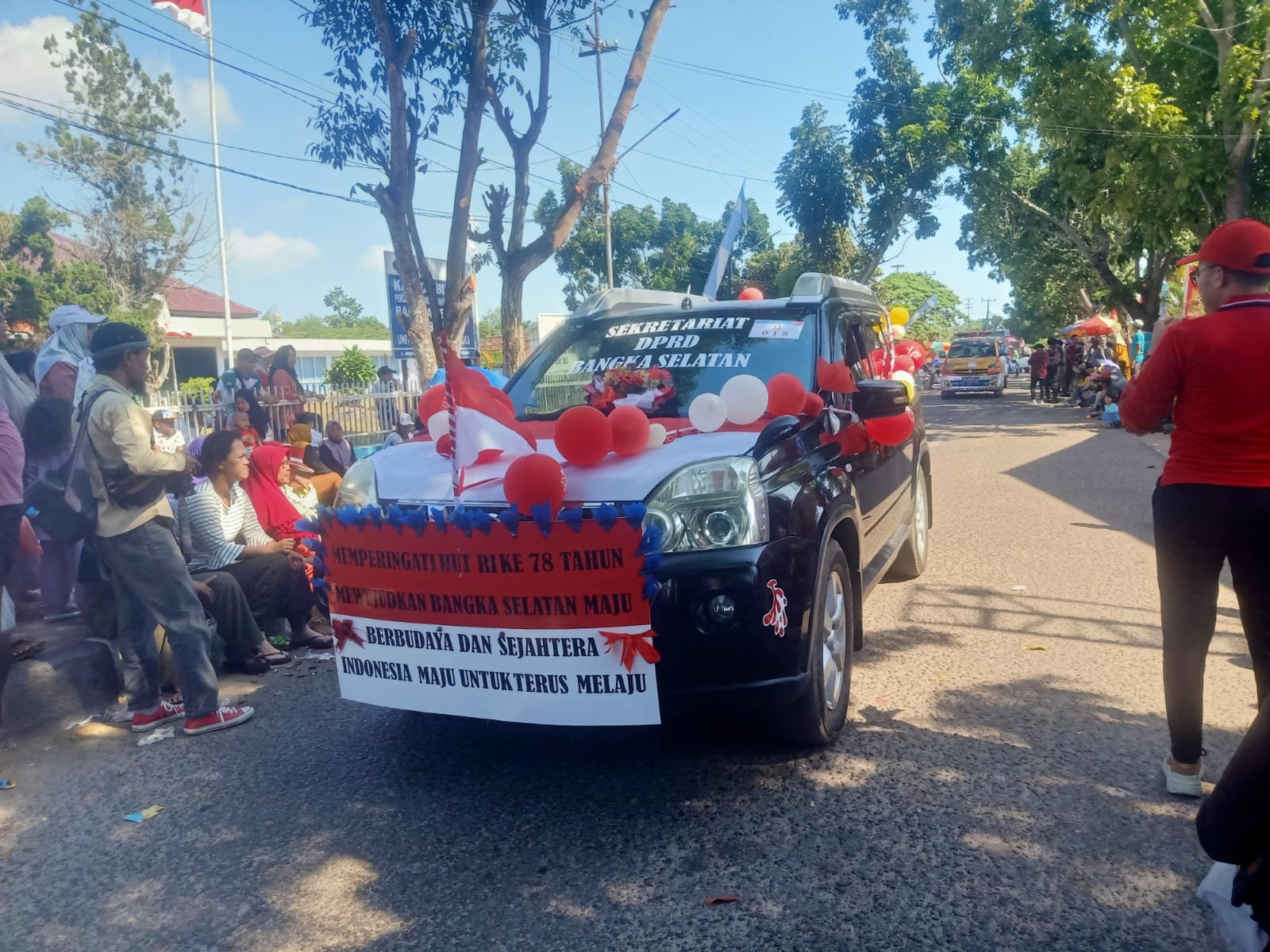 “Sekretariat DPRD Bangka selatan beserta jajarannya turut memeriahkan pawai karnaval mobil hias dengan mengusung tema dengan memperingati HUT RI ke 78 tahun mewujudkan Bangka selatan maju berbudaya dan sejahtera untuk terus melaju Indonesia maju,” ungkapnya.
