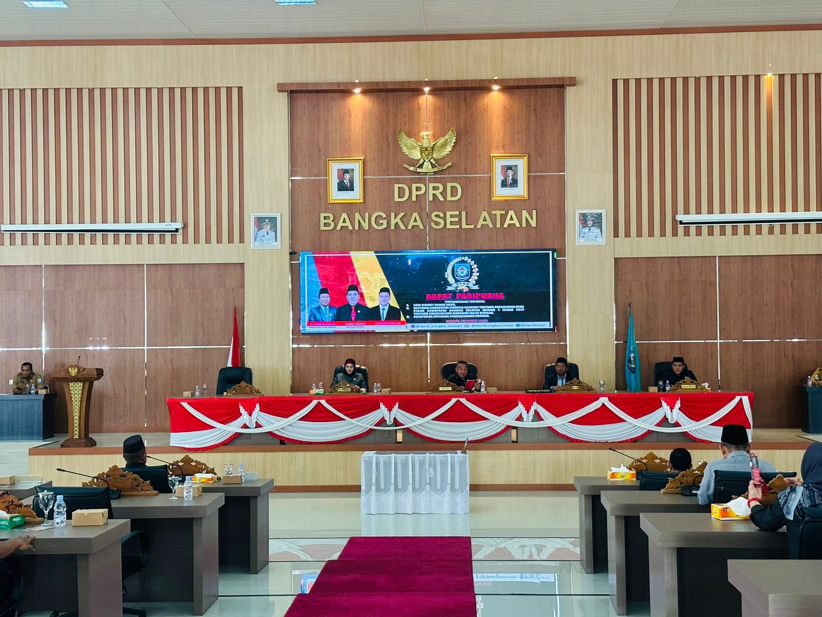 Rapat dipimpin langsung oleh Ketua DPRD Bangka Selatan, Erwin Asmadi, dengan didampingi Wakil Ketua DPRD, H. Komarudin dan Rusi Sartono. Jalannya sidang dihadiri oleh seluruh jajaran anggota DPRD Bangka Selatan serta sejumlah tokoh penting, di antaranya: