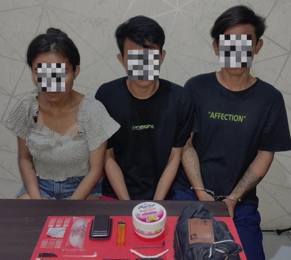 Masih kata Ipda GJ Budi, Selain menangkap ketiga pelaku, polisi juga mengamankan sejumlah barang bukti yakni 1 helai alumunium foil, 3 bungkus plastik bening kosong, 1 ball plastik bening kosong, 1 unit timbangan digital, 1 buah pirek kaca, 1 buah sekop dari pipet minuman, 2 buah sekop dari kertas, 1 buah korek api gas, 1 buah sikat maskara bulu mata, 1 gulungan tisu, 1 buah wadah berwarna putih, Uang tunai senilai Rp400.000,-, 1 helai celana berwarna hitam, 2 unit handphone, 1 unit sepeda motor Yamaha NMAX.