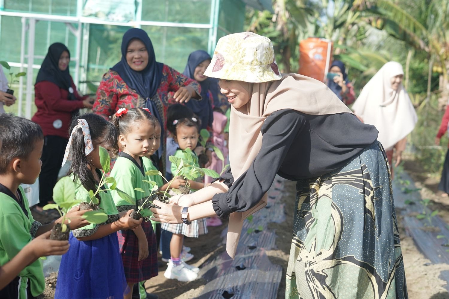“Makanan yang dikonsumsi oleh anak-anak harus beragam, bergizi, seimbang, dan aman, mulai dari bagaimana pengolahannya sampai dengan pilihan makanan seperti sayuran yang bisa kita tanam sendiri dan juga bisa bekerja sama dengan KWT setempat,” tutur Eva.