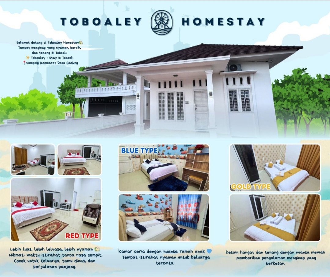 ​“Toboaley Homestay memiliki total tiga kamar dengan tipe berbeda. Kami menyediakan Red Type dengan fasilitas mewah seperti AC, kursi pijat, dan kamar mandi dalam seharga Rp350.000 per malam. Tipe ini sangat diminati tamu yang ingin relaksasi maksimal,” ujar Ros saat dikonfirmasi via whatsapp pada Jumat (26/12/2025).