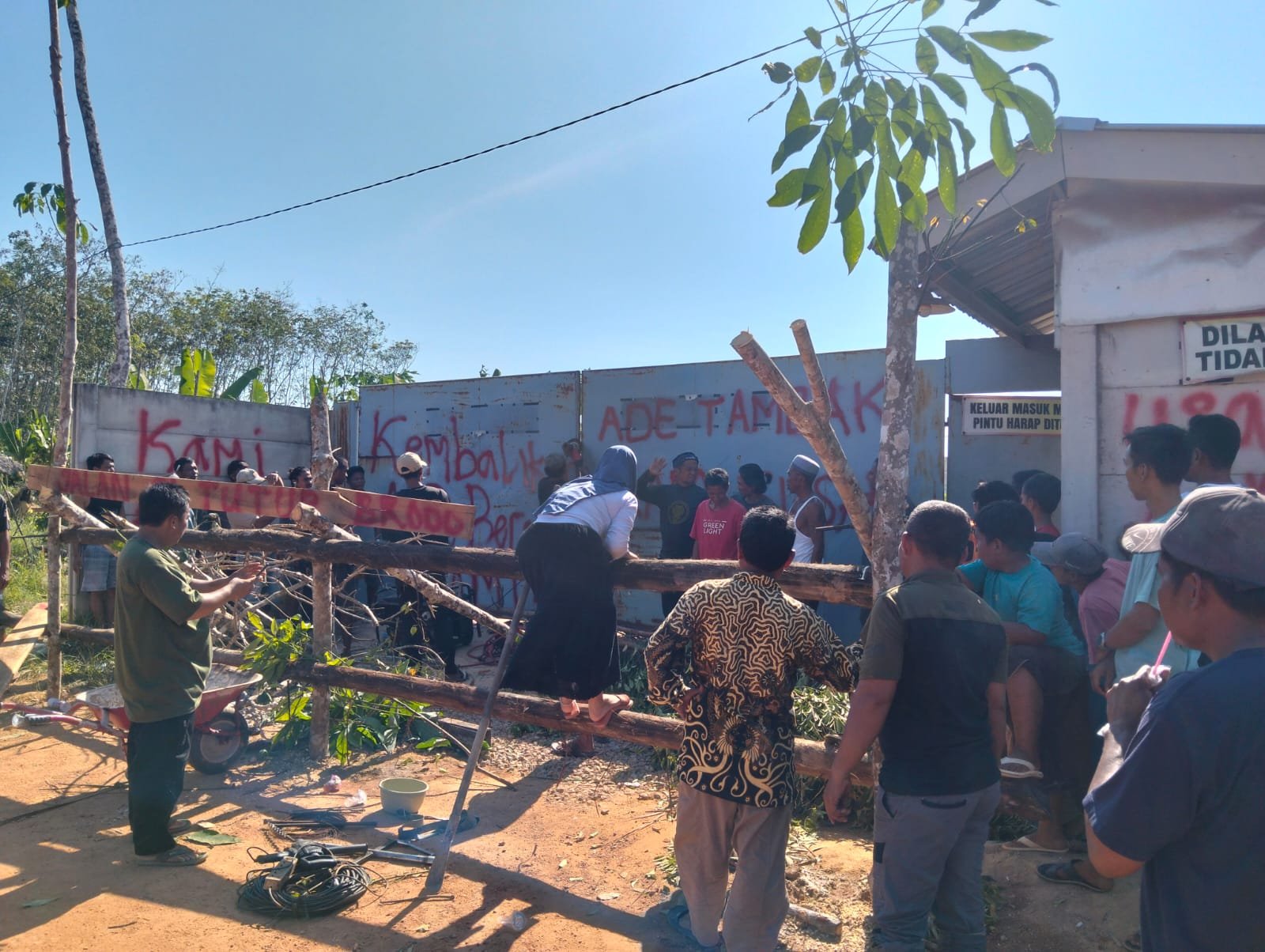 Mereka menutup pintu gerbang dengan membuat blokade pagar dari kayu.