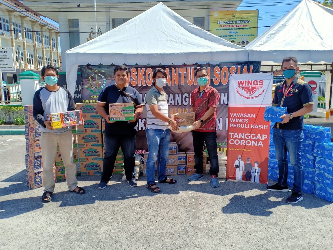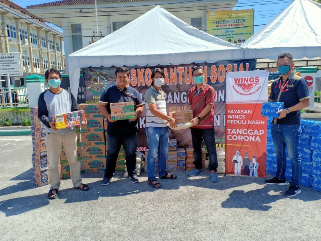 PANGKALPINANG, ERANEWS.CO.ID — PT Pangkalpinang Distribusindoraya (Wings) Pangkalpinang, menyerahkan bantuan sembako, di Posko Bantuan Sosial (Bansos) Kejaksaan Negeri (Kejari) Kota Pangkalpinang dan Pokja Wartawan PGK. Jumat, (17/04/20).