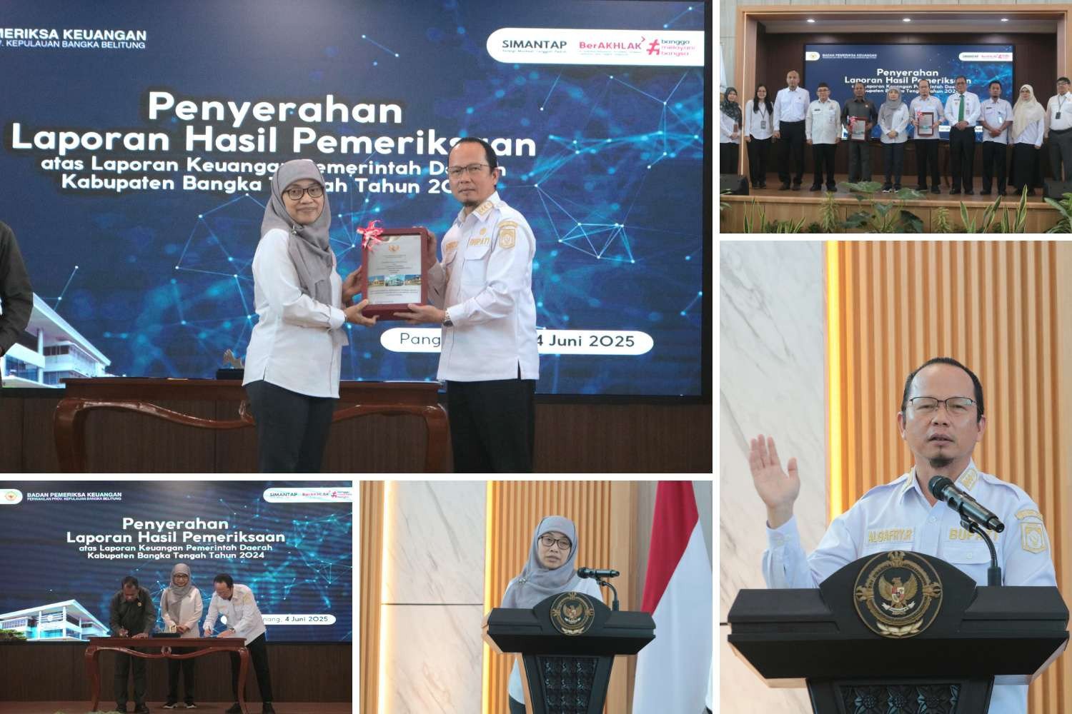 Penyerahan Laporan Hasil Pemeriksaan dilakukan secara resmi di Kantor BPK Perwakilan Provinsi Kepulauan Bangka Belitung pada Rabu (04/06/2025), dan dihadiri langsung oleh Bupati Bangka Tengah, Algafry Rahman.