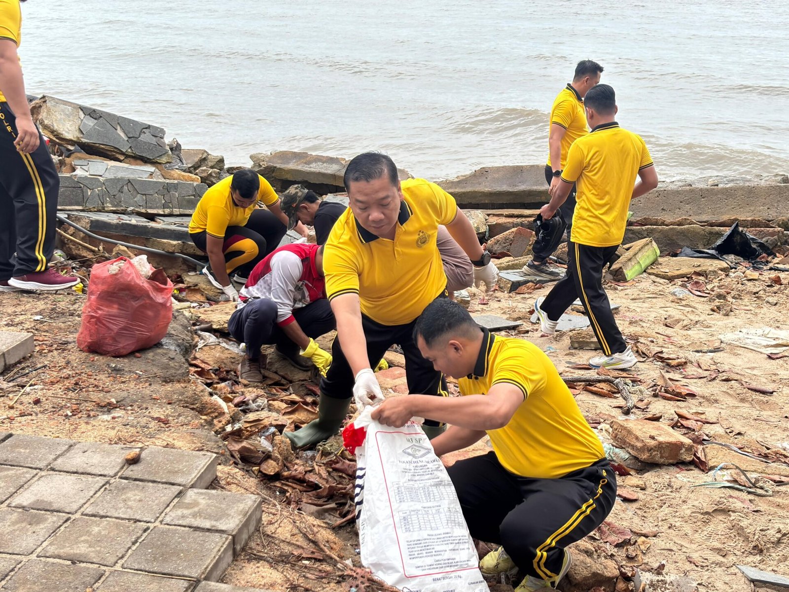 Kegiatan ini diikuti oleh jajaran pejabat utama (PJU) Polres Bangka Selatan, personel Kodim 0432/Basel, Dinas Lingkungan Hidup, Satpol PP, Damkar, hingga Cabang Bhayangkari Polres Bangka Selatan. Tak ketinggalan, para siswa-siswi dan masyarakat lokal turut bahu-membahu membersihkan area pantai menggunakan peralatan seperti kantong plastik sampah, sapu lidi, dan serokan.